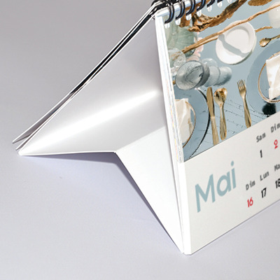 Le calendrier chevalet personnalisé est compact et pratique pour les bureaux. Posé sur un bureau, il offre une visibilité optimale de votre identité visuelle.