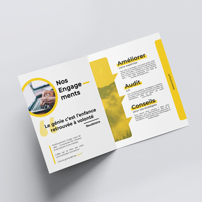 Le dépliant luxe est conçu pour une communication haut de gamme. Papier premium, vernis sélectif, dorure ou gaufrage apportent élégance et prestige.
