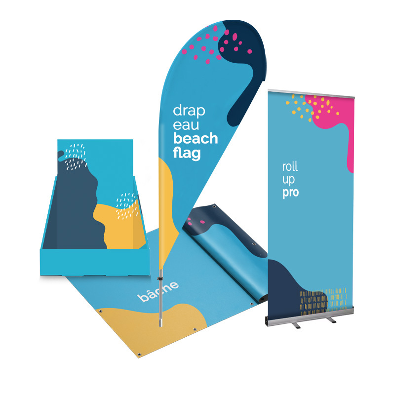Bâches, oriflammes, beachflags, arches, structures gonflables, panneaux… Nos supports résistent aux conditions extérieures tout en restant faciles à transporter et installer.