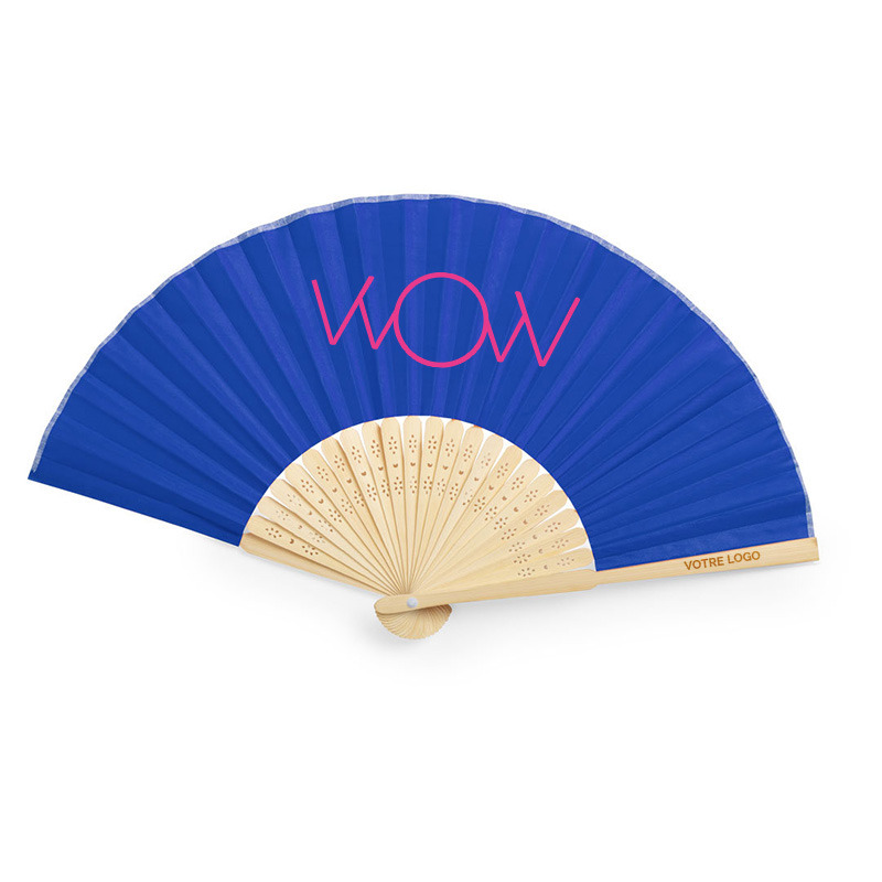 Éventail : un accessoire pratique et élégant qui permet de rafraîchir naturellement les participants lors d’événements, festivals ou journées ensoleillées. Conçu avec un tissu polyester résistant 190 T et des tiges en bambou souple, cet éventail combine robustesse et respect de l’environnement.