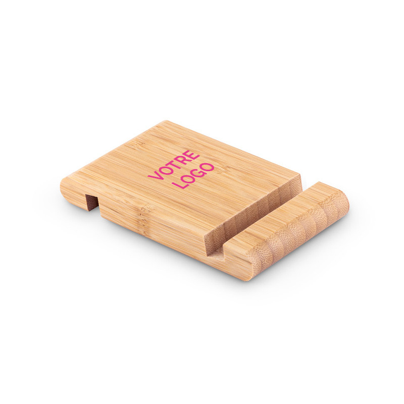 Ce support de téléphone portable personnalisable proposé par WOW & Co est fabriqué en bambou, un matériau d’origine naturelle apprécié pour son aspect chaleureux et son faible impact environnemental. Son design épuré s’intègre facilement dans tous les environnements professionnels.