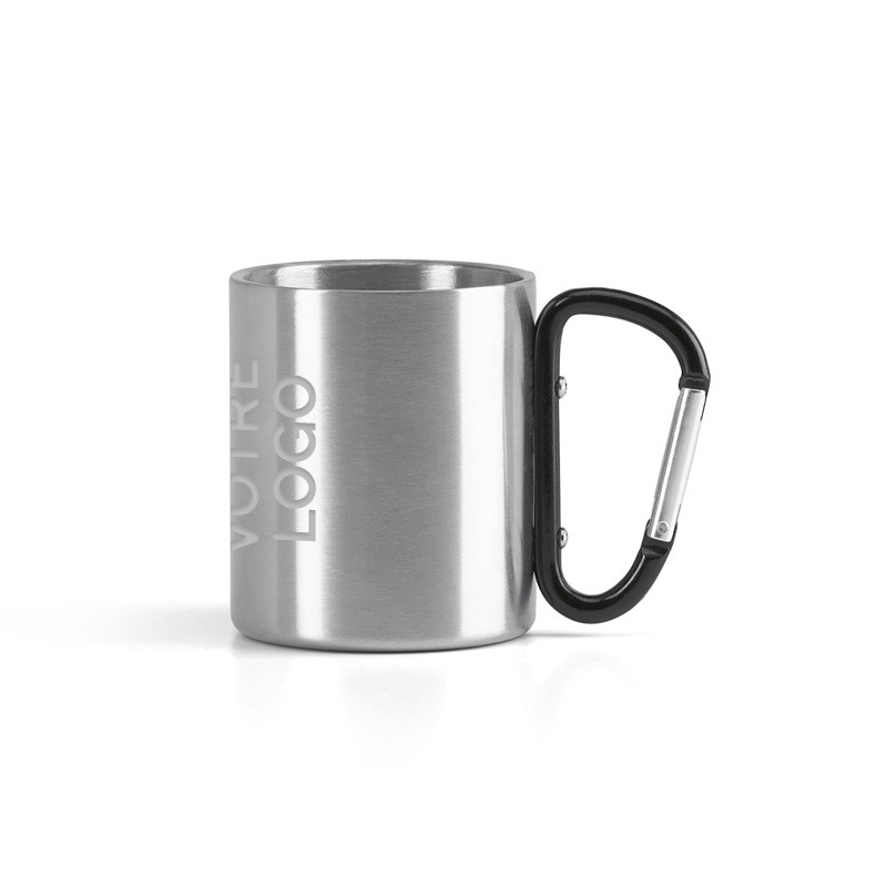 Ce mug se distingue par sa poignée façonnée avec mousqueton intégré, permettant d’accrocher facilement le produit à un sac ou un équipement lors de vos déplacements ou activités extérieures, ajoutant à la praticité et à la visibilité de votre marque.