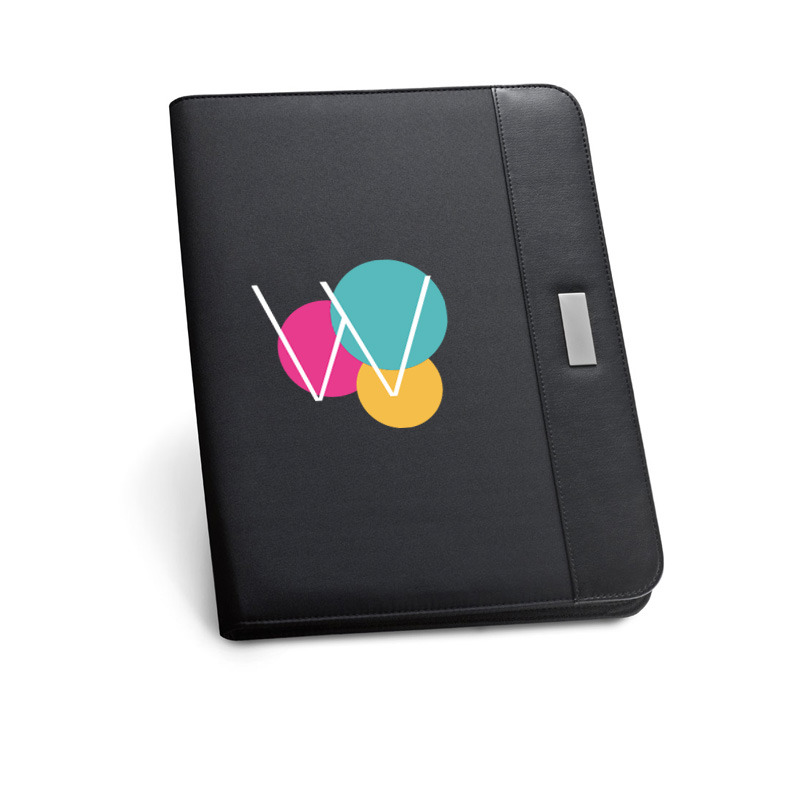 Fabriqué en PU et microfibre, il est équipé d’une fermeture zippée pour sécuriser vos documents, plusieurs poches intérieures pour ranger cartes, notes et autres accessoires, ainsi qu’un bloc de 40 pages lignées et un porte-stylo intégré (stylo non inclus). Personnalisable sur le devant, une plaque ou le verso par transfert digital, transfert classique ou gravure laser, il met en valeur votre marque de manière sobre et professionnelle.