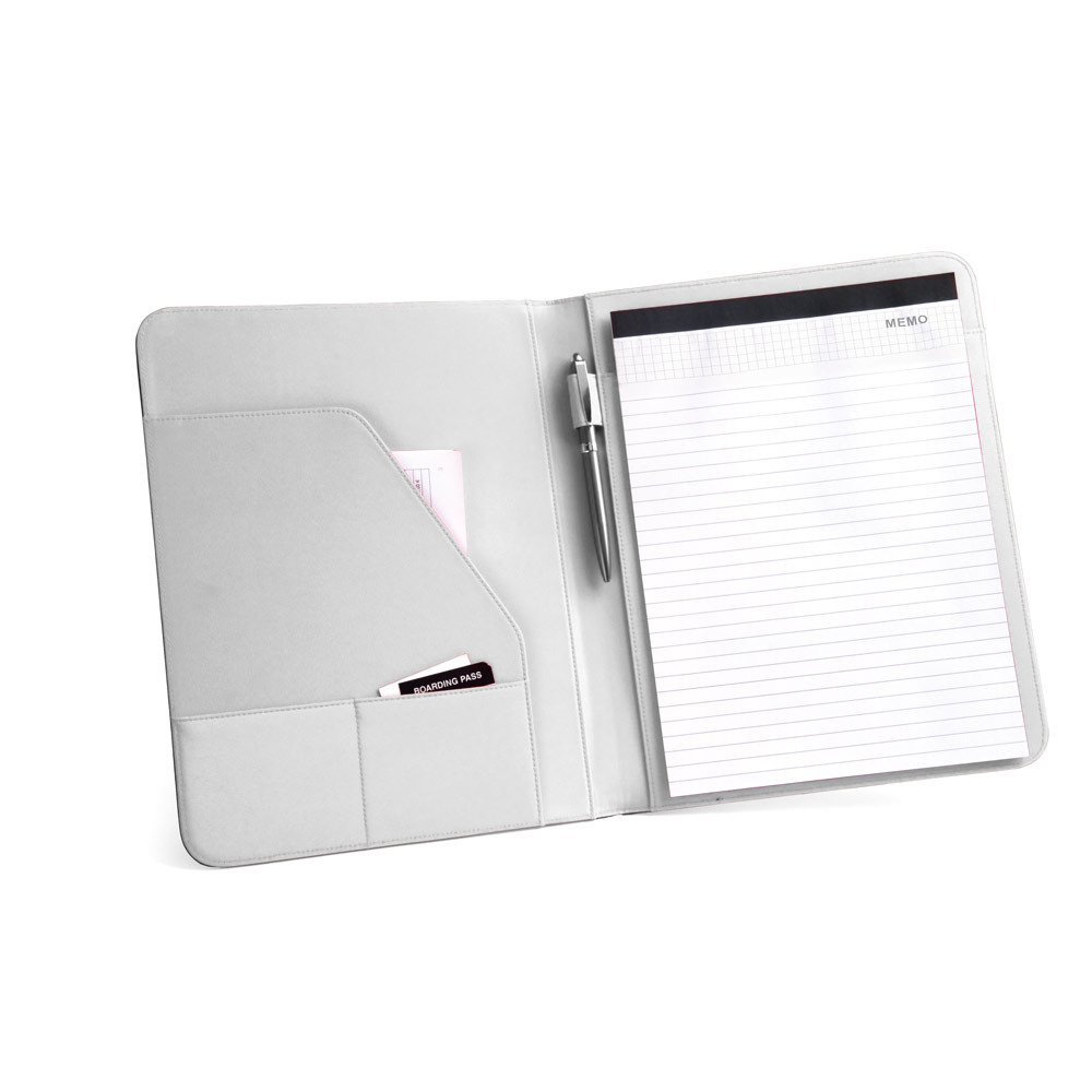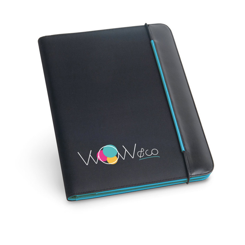 Ce porte-documents combine un extérieur en PU résistant et un intérieur en microfibre, équipé d’une fermeture élastique pour maintenir vos documents en place. À l’intérieur, il comprend un bloc de 40 pages lignées, trois poches multifonctions ainsi qu’un porte-stylo (stylo non inclus) pour une organisation optimale. Personnalisable sur le devant et/ou le verso par transfert digital ou transfert classique, il s’adresse particulièrement aux industriels, CSE, collectivités, écoles, franchises et événements.