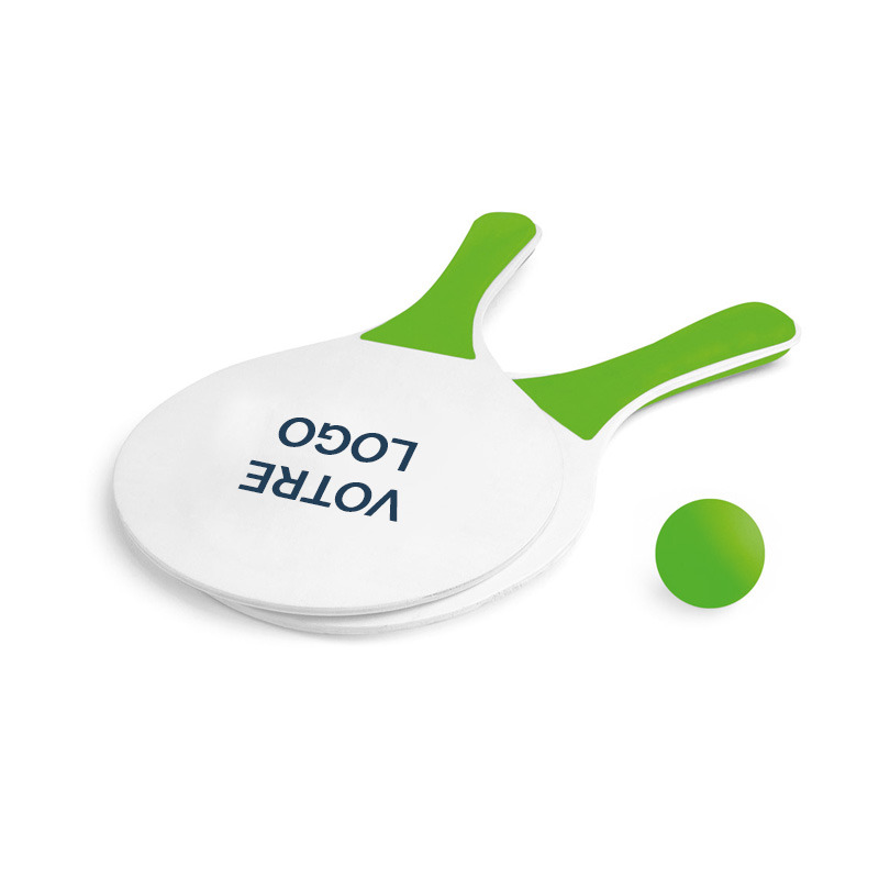 La personnalisation est réalisée directement sur la surface des raquettes, offrant un espace visible pour apposer votre logo ou message. Ce marquage transforme un accessoire de loisir en support de communication impactant, associé à des moments positifs et mémorables. Chaque utilisation renforce la visibilité de votre marque dans un contexte détendu et fédérateur.