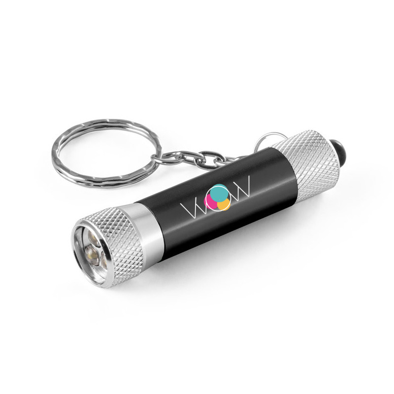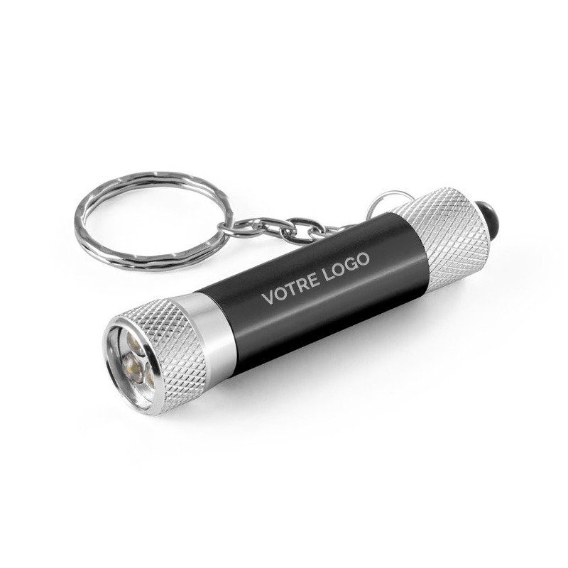 Ce porte-clés avec lampe de poche personnalisable proposé par WOW & Co est fabriqué en aluminium, offrant à la fois légèreté, robustesse et durabilité. Son format compact en fait un accessoire facile à transporter au quotidien.