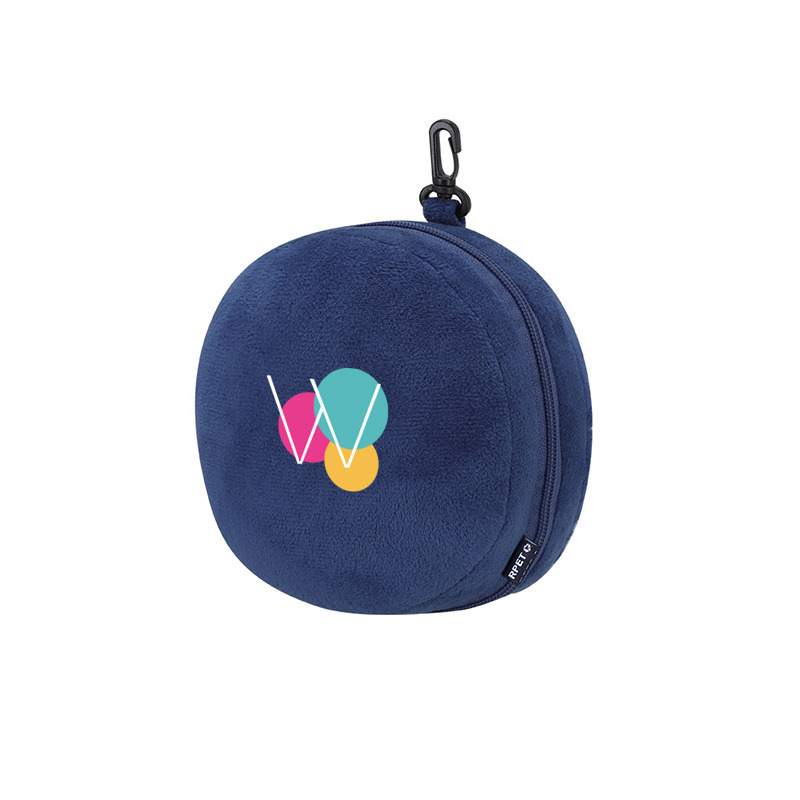 Ce coussin de voyage avec masque de sommeil personnalisable proposé par WOW & Co est conçu pour offrir un confort optimal lors des déplacements. Fabriqué en polyester RPET doux, il associe bien-être, praticité et engagement environnemental.