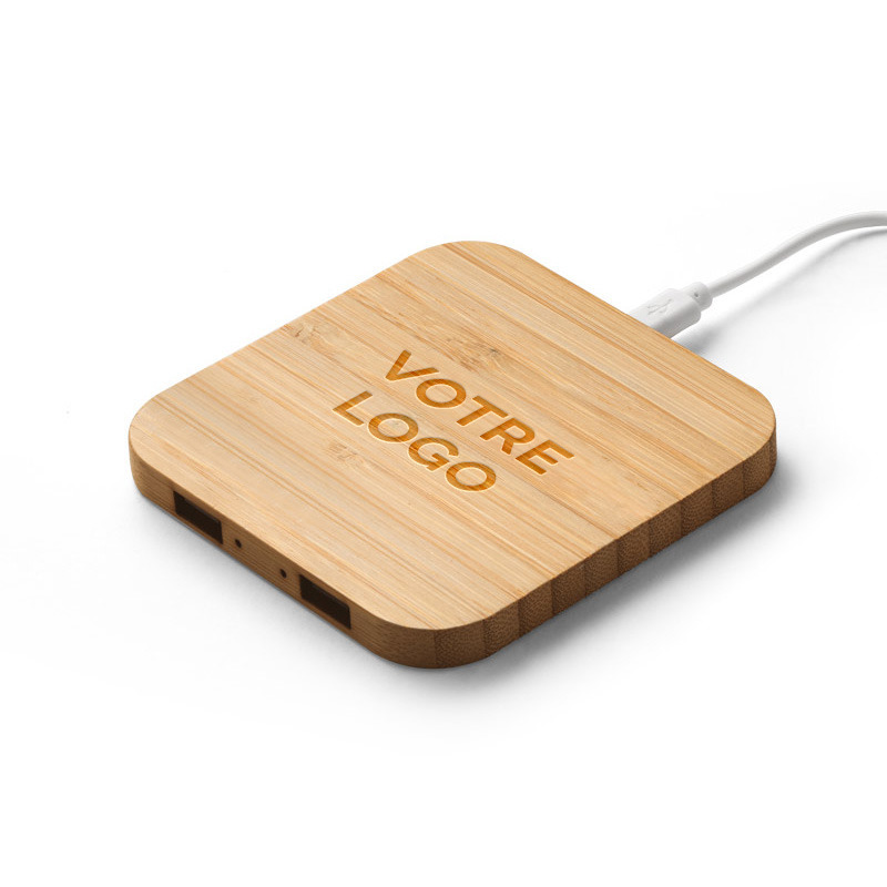 La surface en bambou peut être personnalisée avec votre logo ou message. Le marquage met en valeur l’aspect naturel du matériau et renforce l’image d’une marque innovante et engagée.