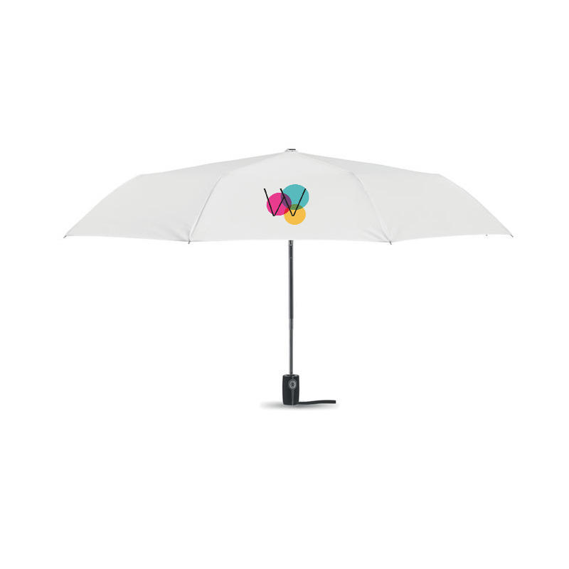 Ce parapluie tempête pliant personnalisable est un indispensable pour vos clients ou collaborateurs. Conçu en pongee 190T, équipé de baleines en fibre de verre pour une résistance optimale au vent, il dispose d'une ouverture et fermeture automatique et d'une poignée en caoutchouc agréable en main.