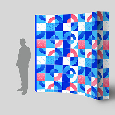 Associez votre mur d’image textile à des kakémonos, totems ou PLV de sol pour créer un espace cohérent et impactant.