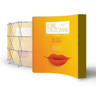 Le mur d’image textile est idéal pour habiller un stand complet, attirer les visiteurs et transmettre vos messages clés avec une forte présence visuelle.