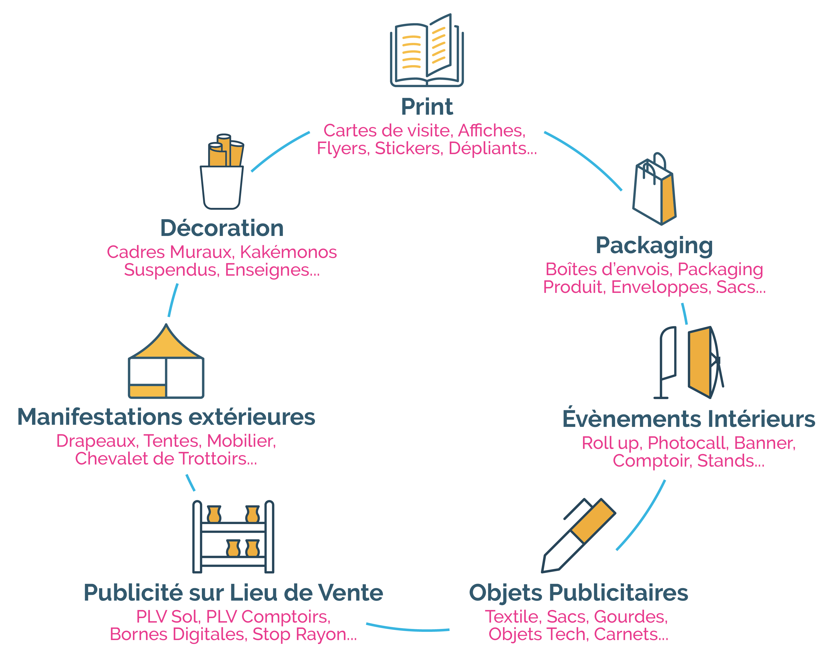 Notre mission est de rendre accessible en ligne une gamme de supports de communication imprimés à 360°, répondant à des besoins de différenciation, de développement durable et d’optimisation économique.